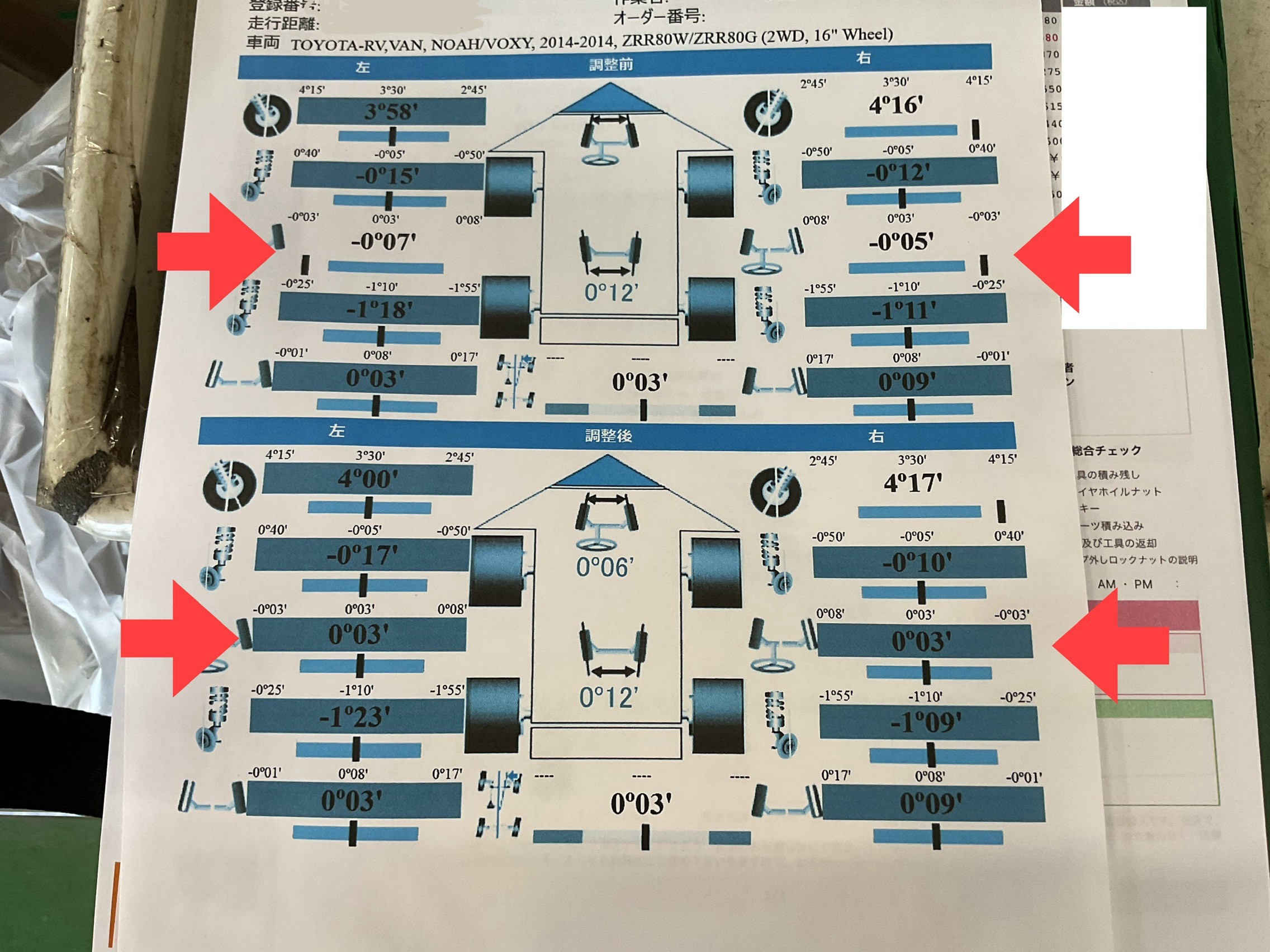 しっかり調整させていただきましたので、片減りの抑制につながったとおもいます!