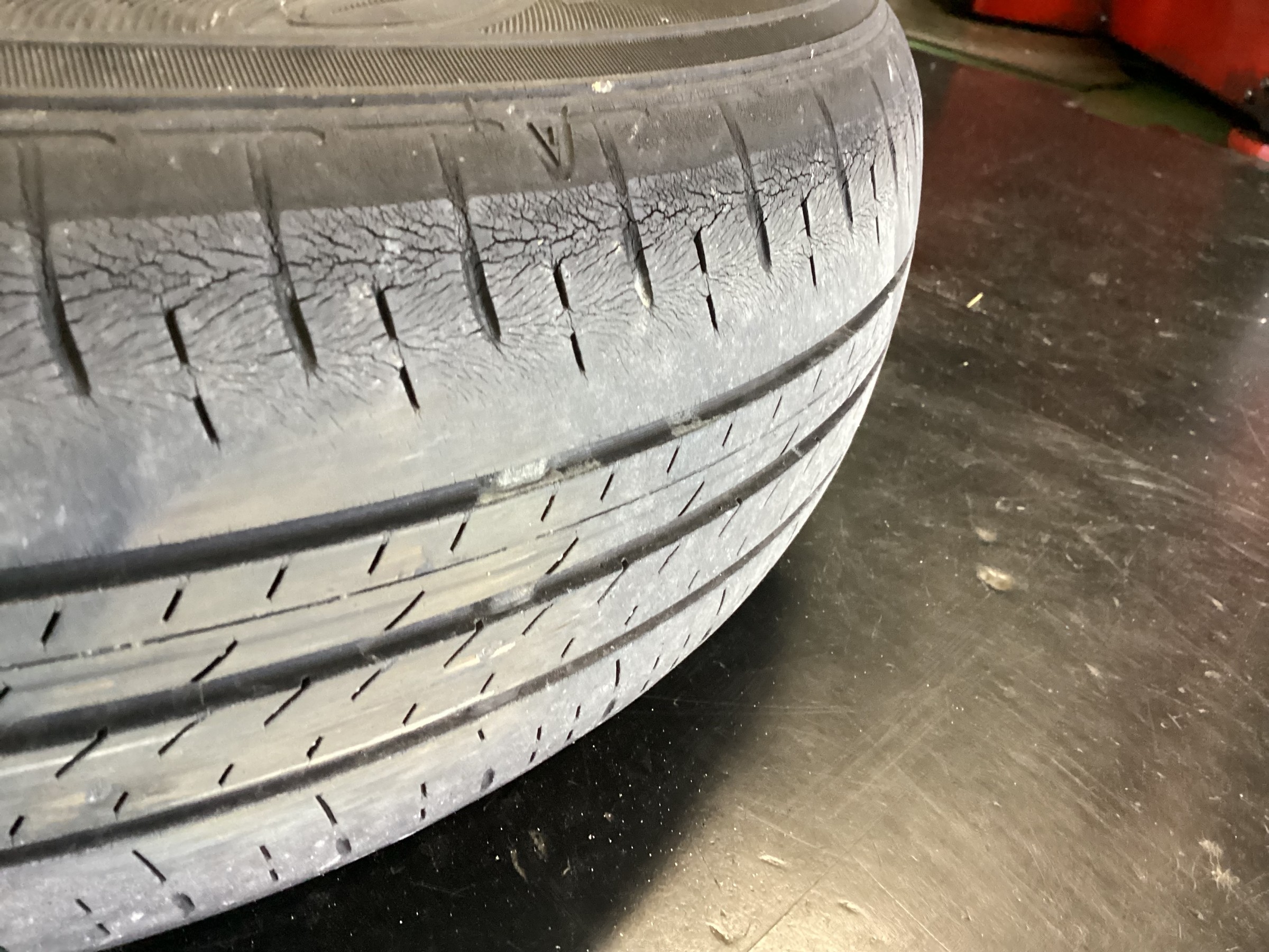 溝も少なく、タイヤのひび割れも目立っています!
