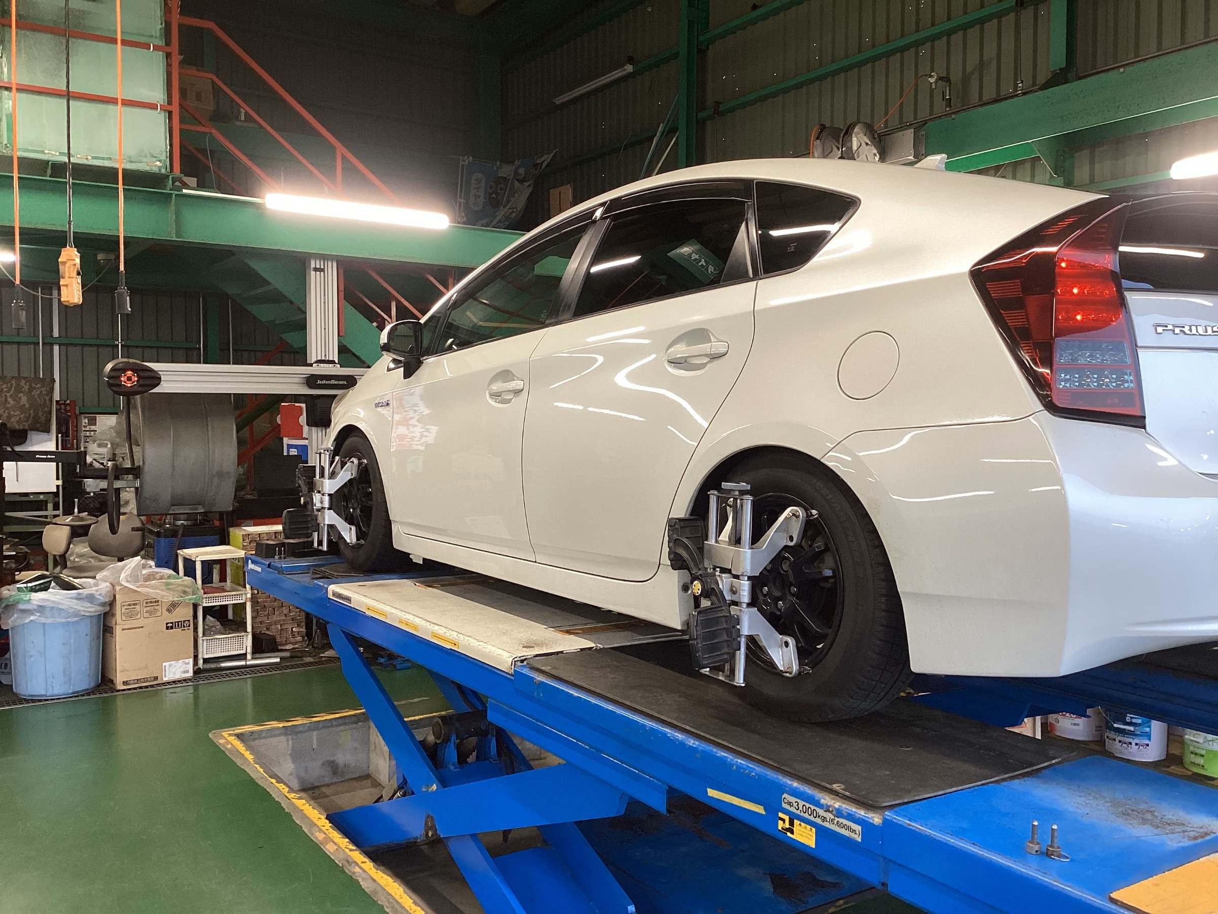 今回は当店スタッフの愛車、トヨタ プリウスのアライメント調整を行いました!