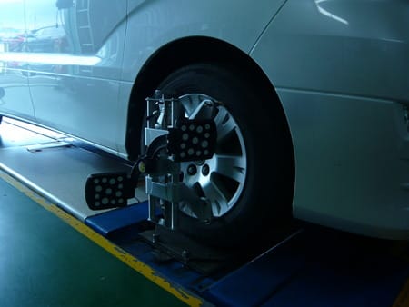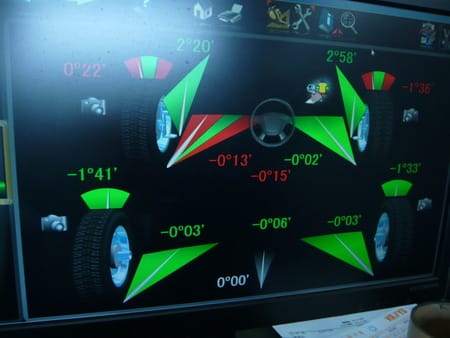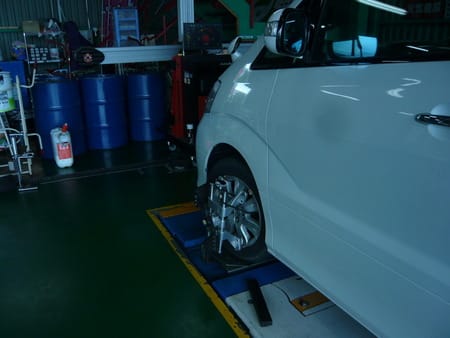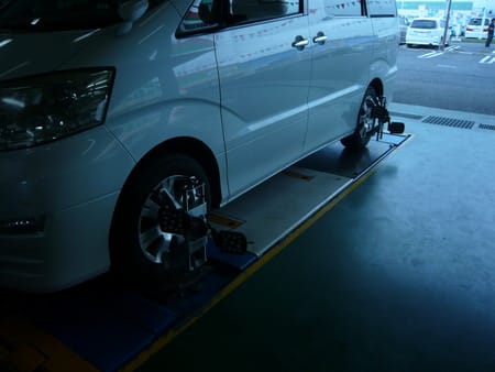 ハンドルが右に取られてしまうという症状が出てるということで早速測定。