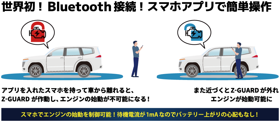 このZ-GUARDは、Bluetoothを利用し、専用アプリからセキュリティの制御が可能になってます!