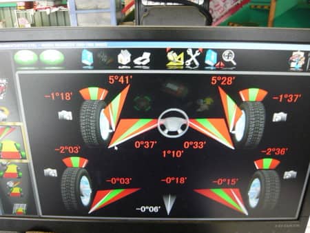 今回はキャンバーは左右差を無くす感じでトーは直進性も考え若干イン、キャスターは基準値で起こせるだけ起こし左右差を無くすという方向で作業させていただきました!!