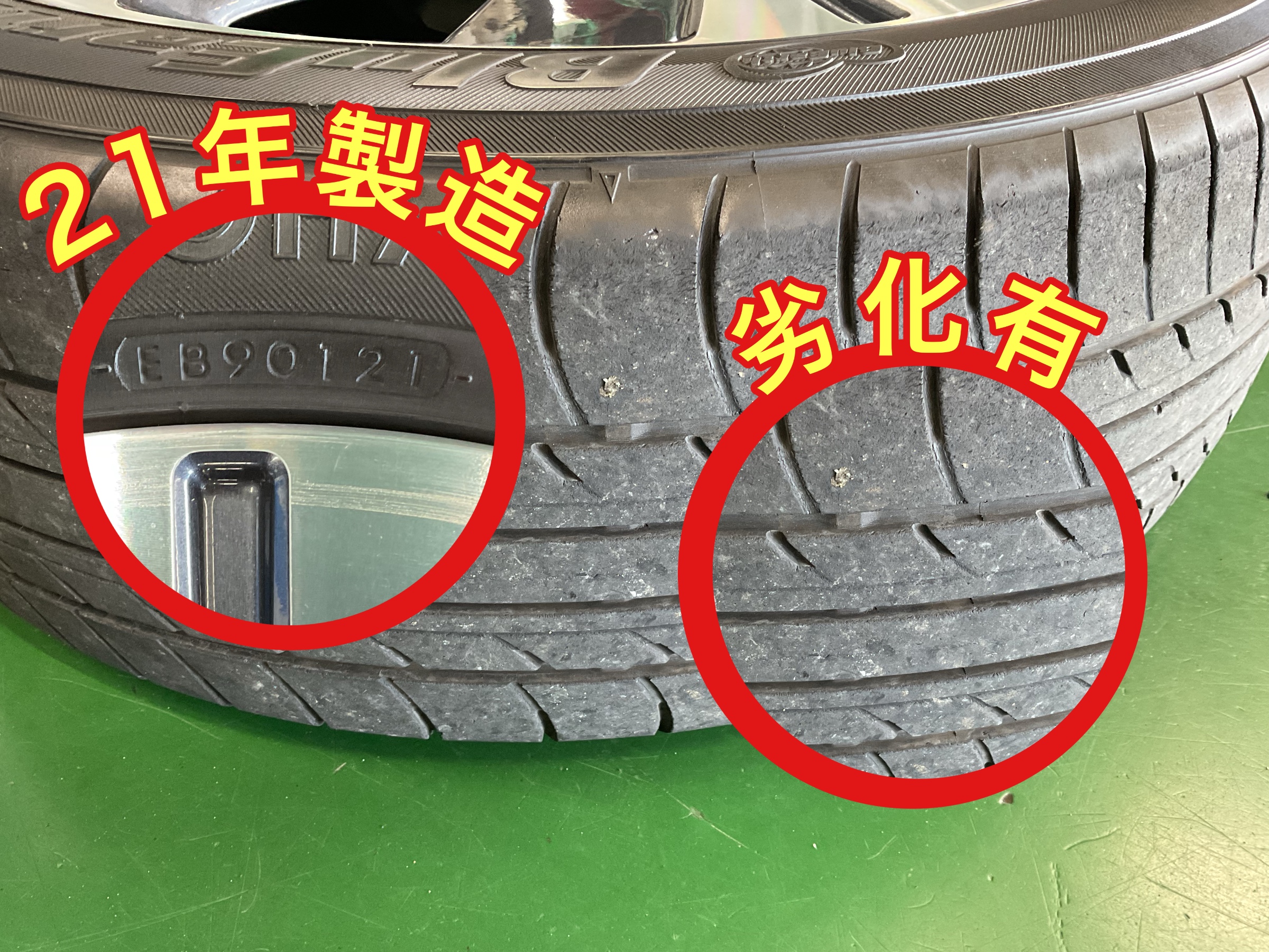 今まで履いていたタイヤは、製造されてから4年経過、