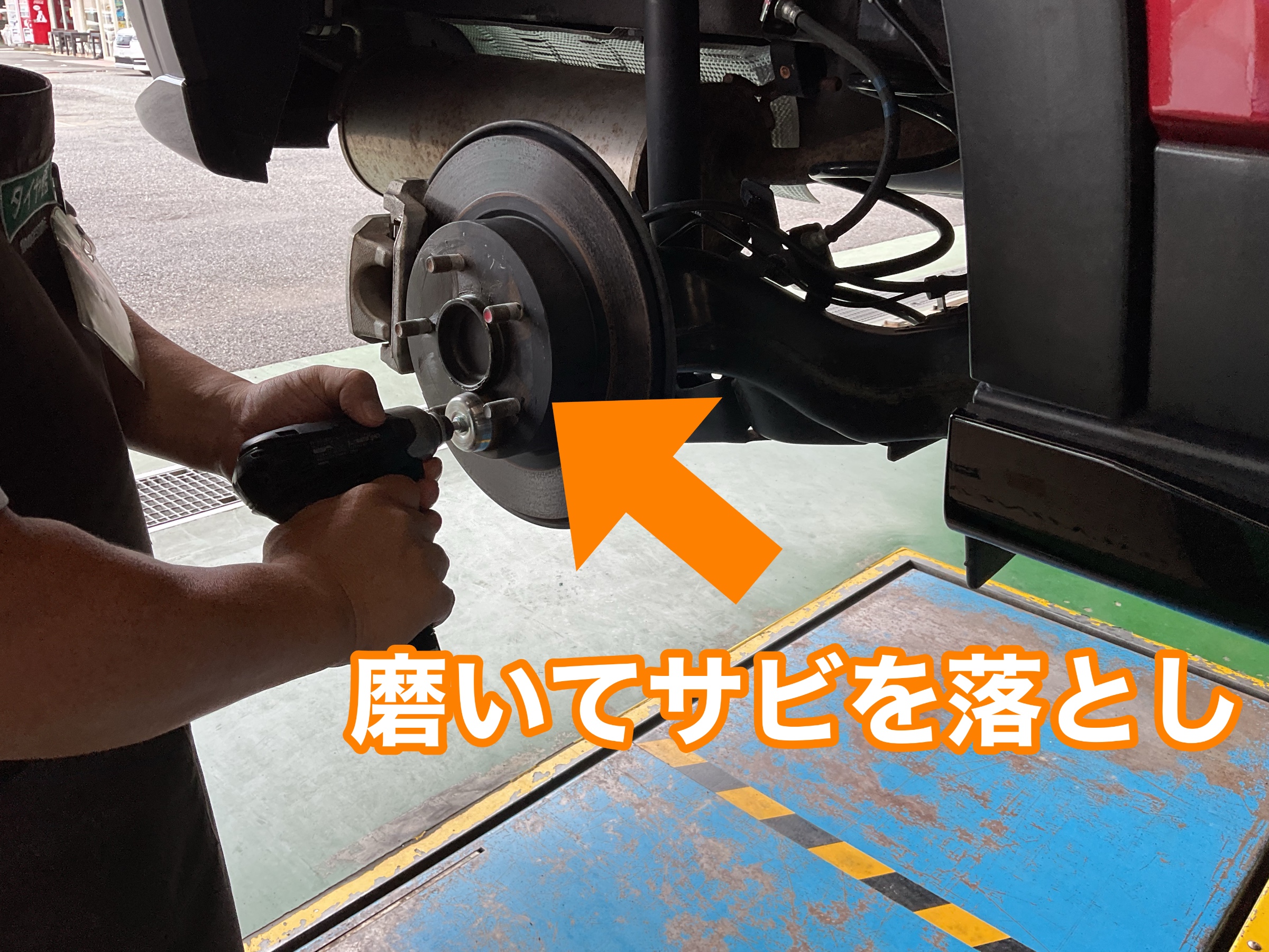 タイヤを外さないと見えないところなので、