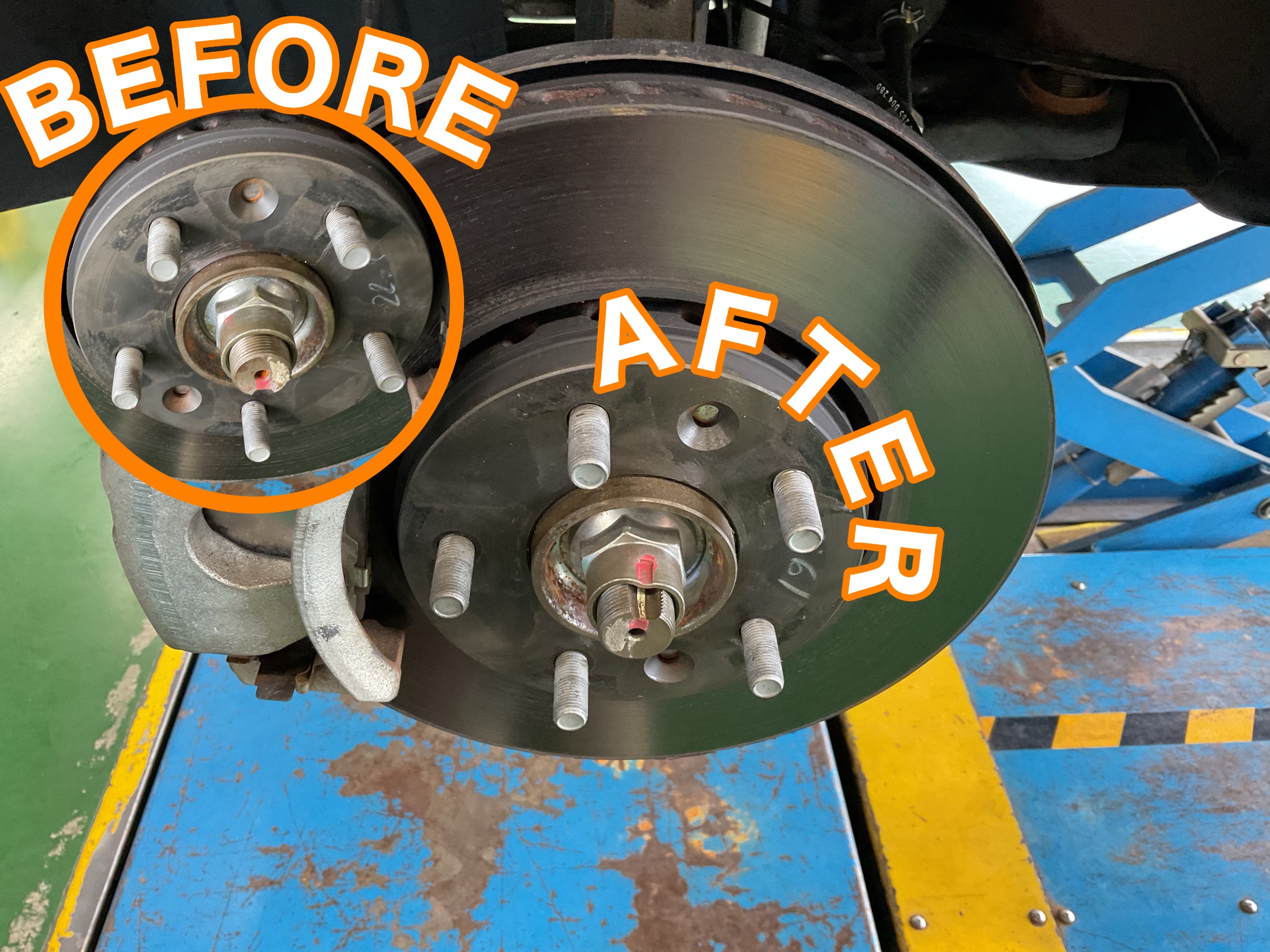 ハブはホイールを取り付ける部分ですが、水分がたまりやすいためとても錆びやすい場所です!