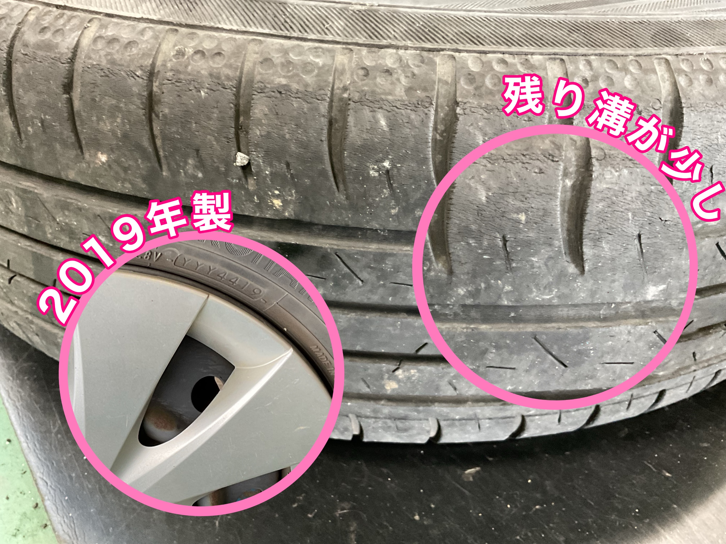 点検の結果、残り溝が少なく、