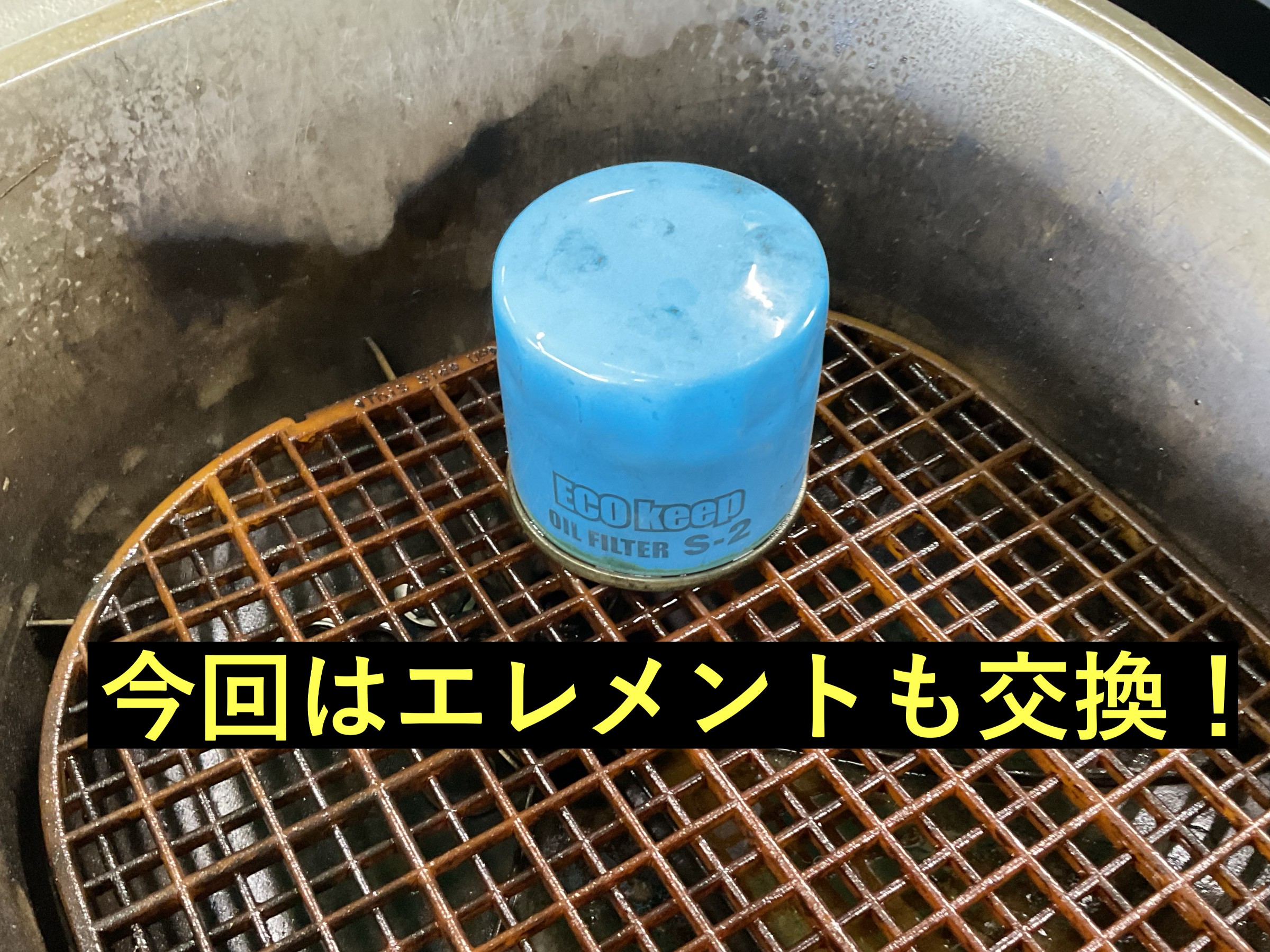 そして、お車を上げてオイルエレメントを取り外し交換!