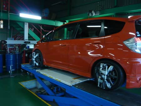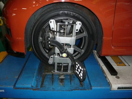 ★アライメントの測定に関しては、スタッフが判り易く現車を使用してご案内させていただいております。