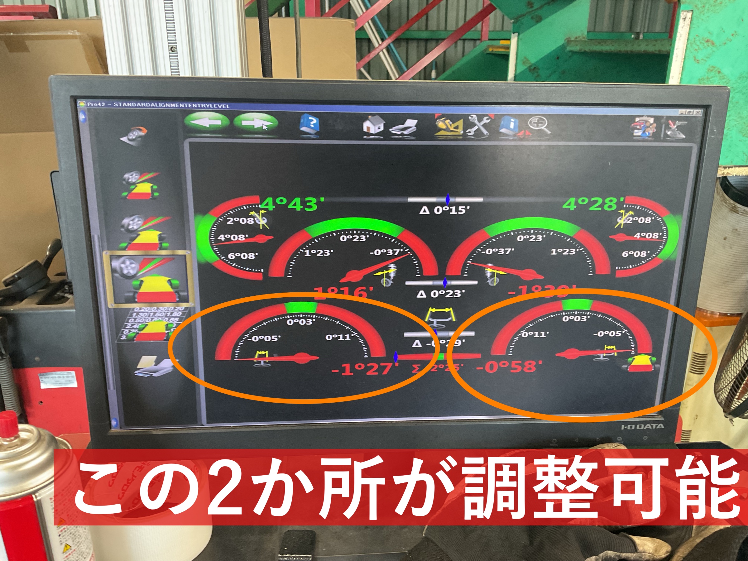 今回は前輪のトー角2箇所が調整可能箇所なので、調整させていただきます!