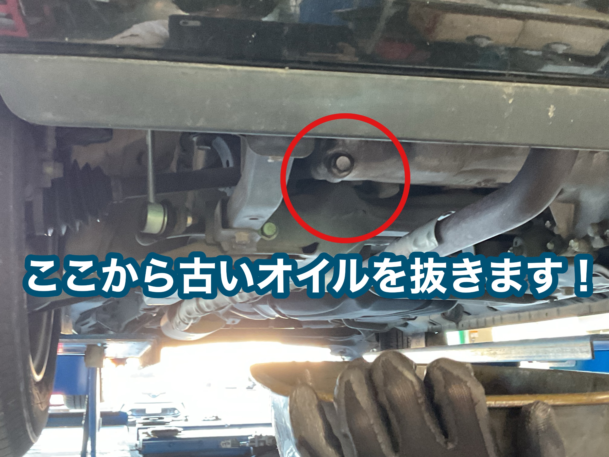 今回はお車の下側からオイルを抜きます!