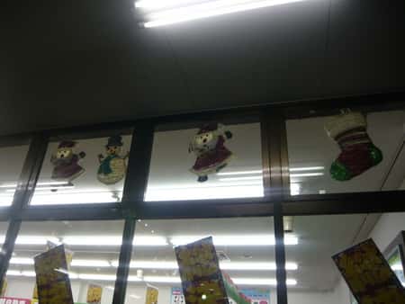 窓の上のほうにもサンタクロースや雪だるまもいます!!