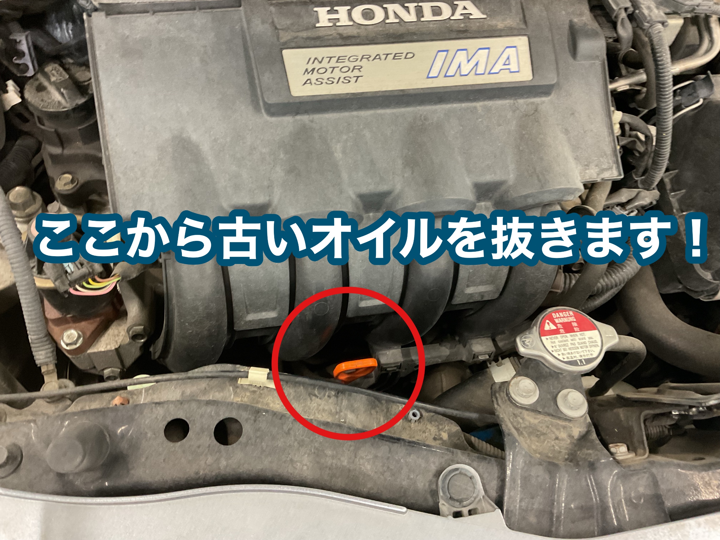 今回はお車のエンジンルームから古いオイルを抜きます!