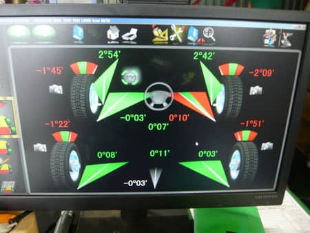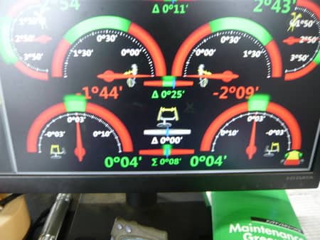 写真2 最初の測定データーになります、右側の赤い表示が片減りの原因かと推測できます。