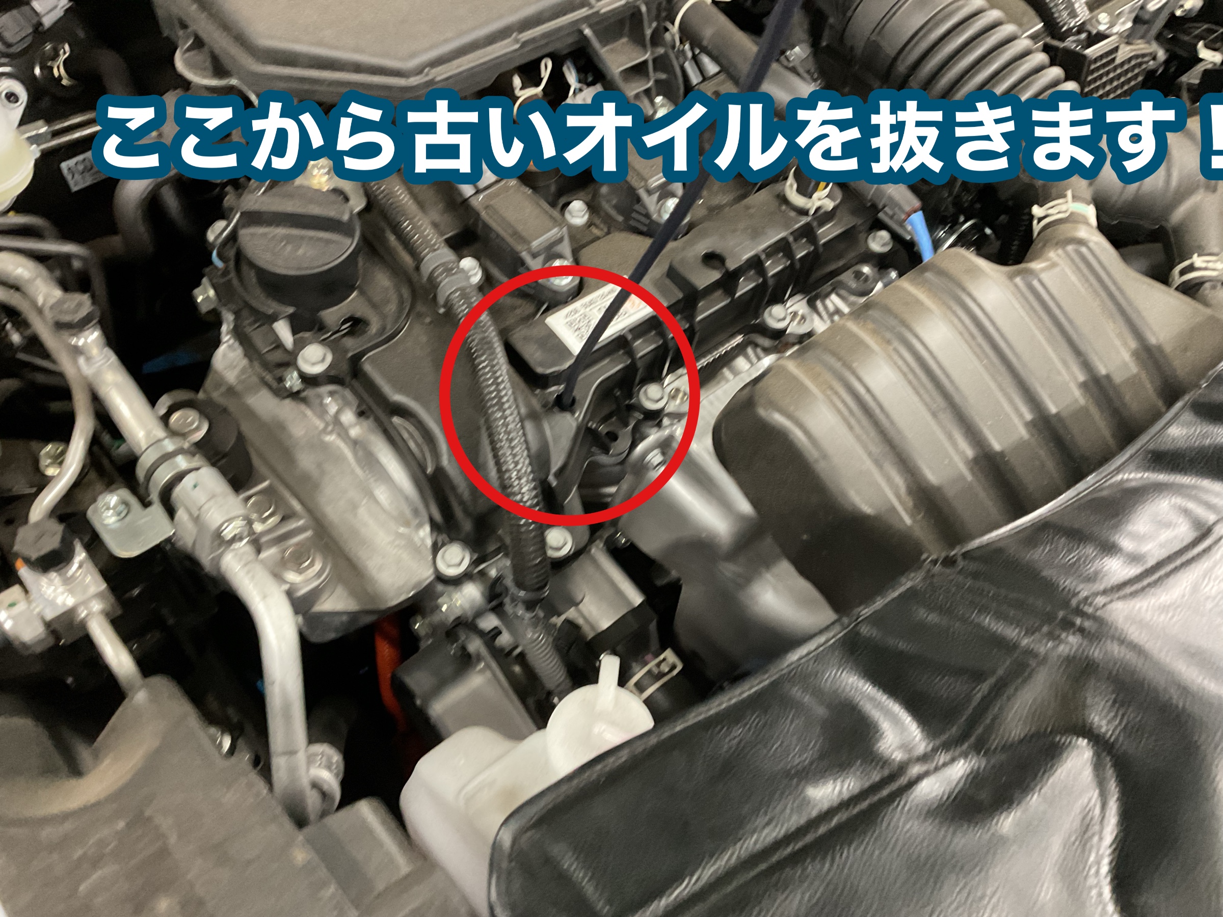 今回はお車のエンジンルームから古いオイルを抜きます!