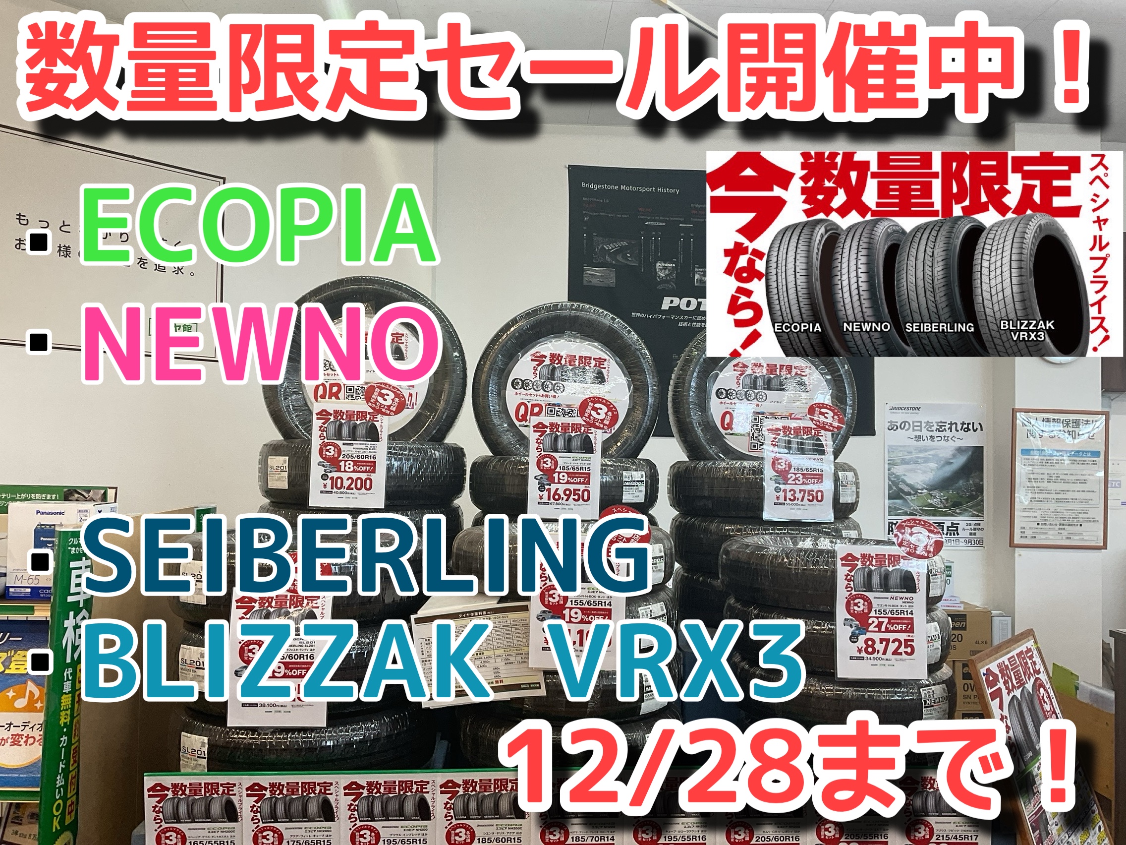 【12/28まで!】数量限定 タイヤスペシャルプライスデー!詳しくはこちら