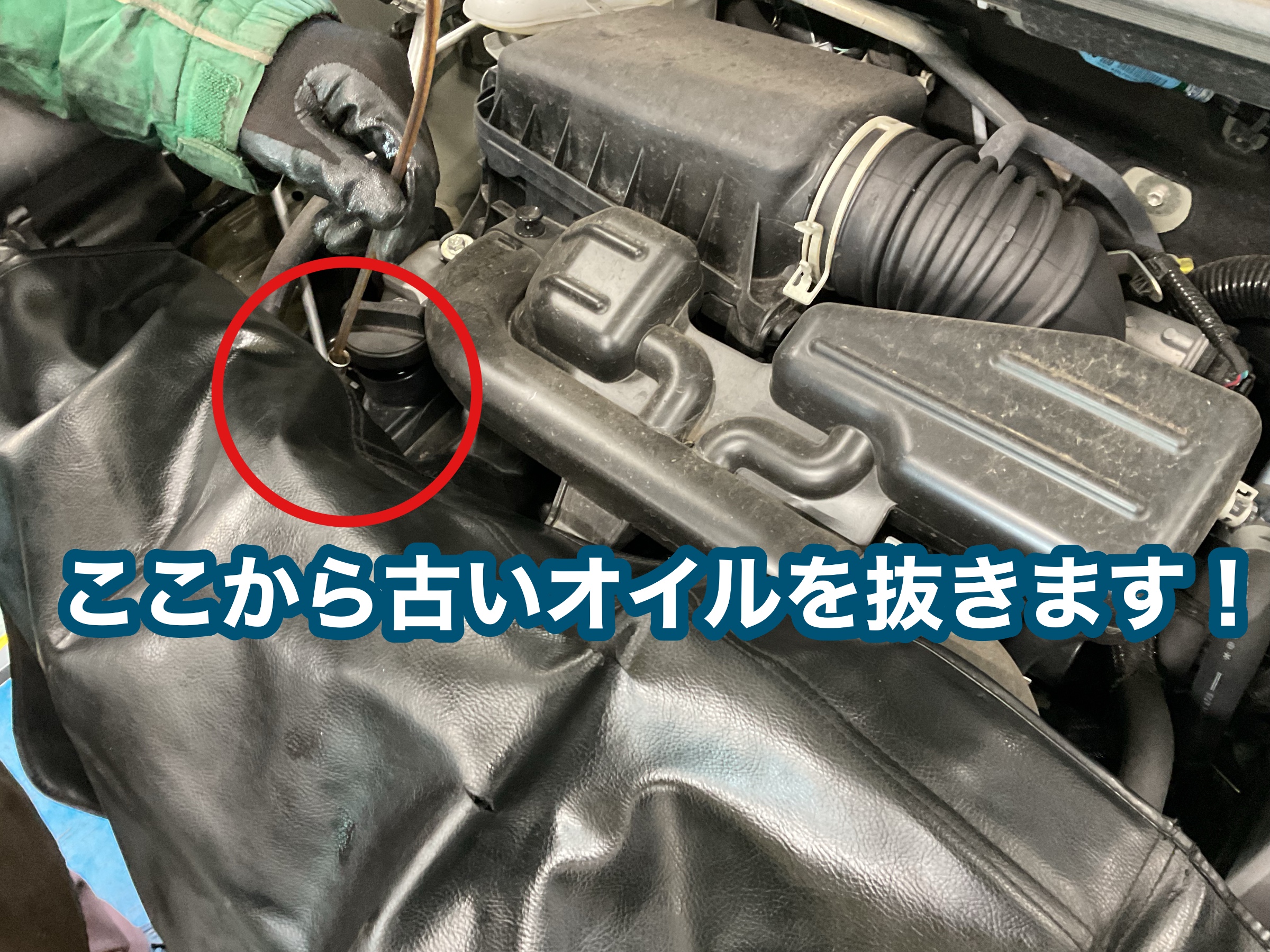 今回はお車のエンジンルームから古いオイルを抜きます!