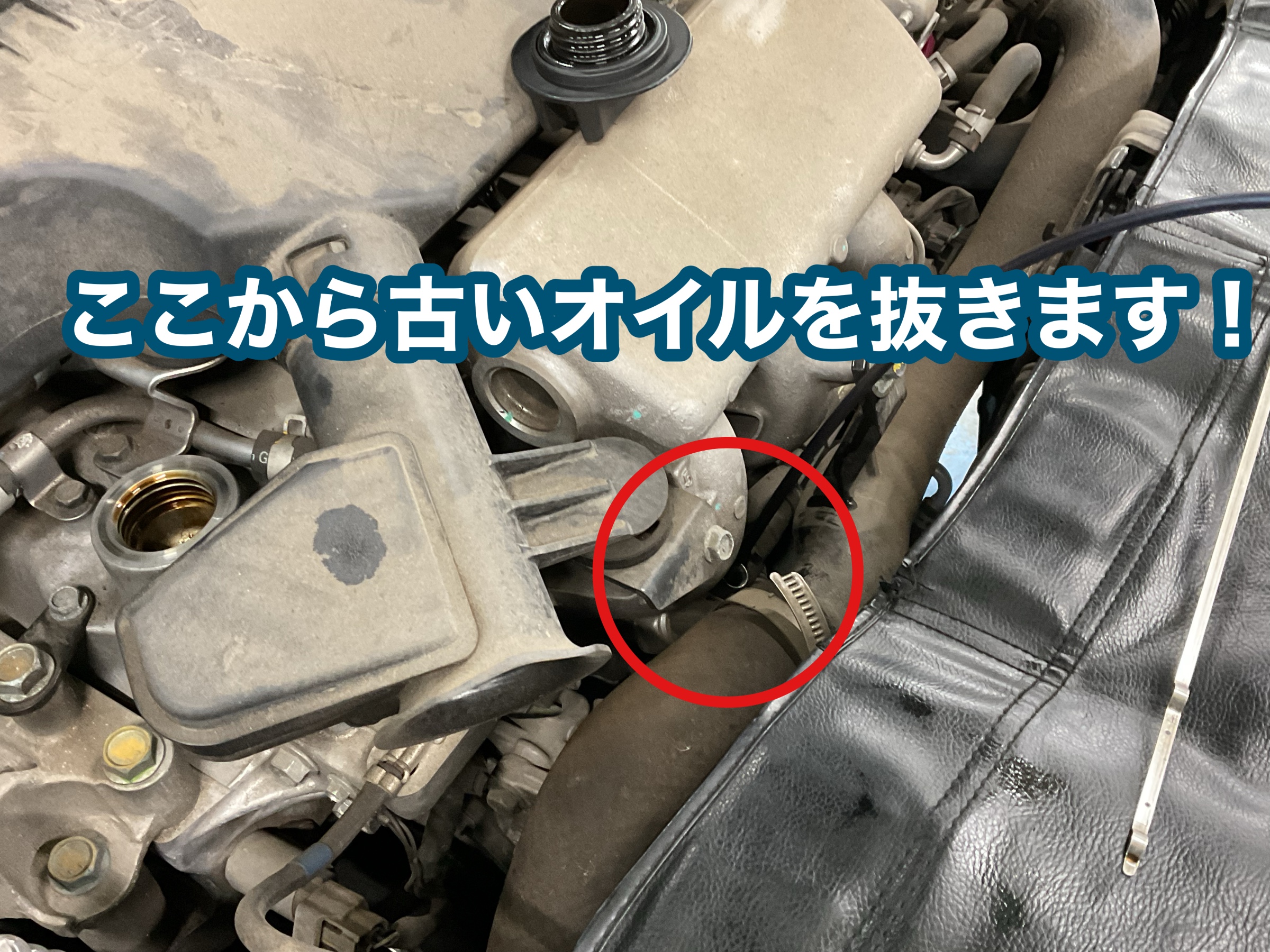 今回はお車のエンジンルームから古いオイルを抜きます!