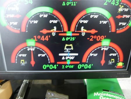 写真2 調整前の状態になります。キャンバーに関しては、車高を下げると数字が大きく