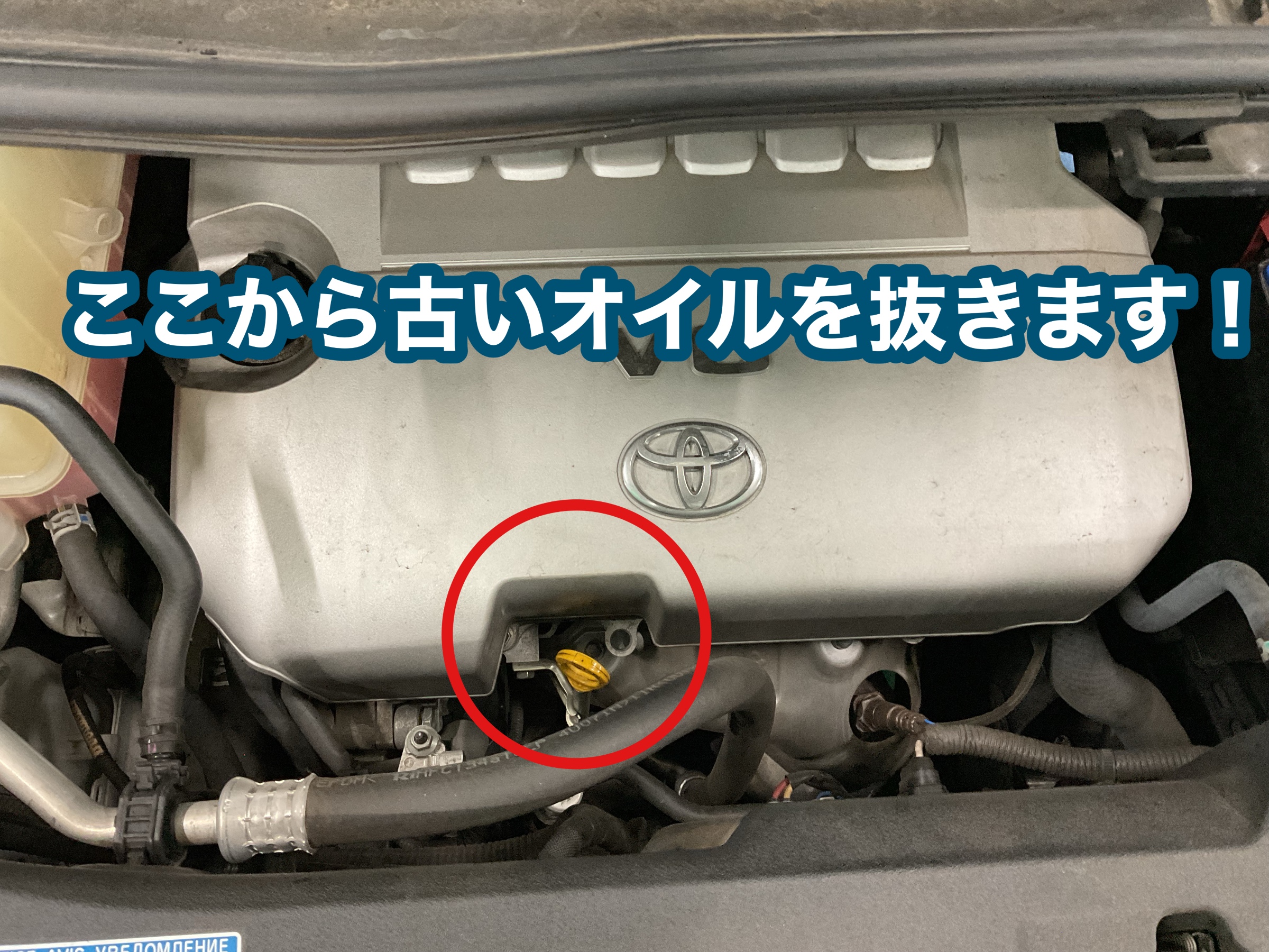 今回はお車のエンジンルームから古いオイルを抜きます!