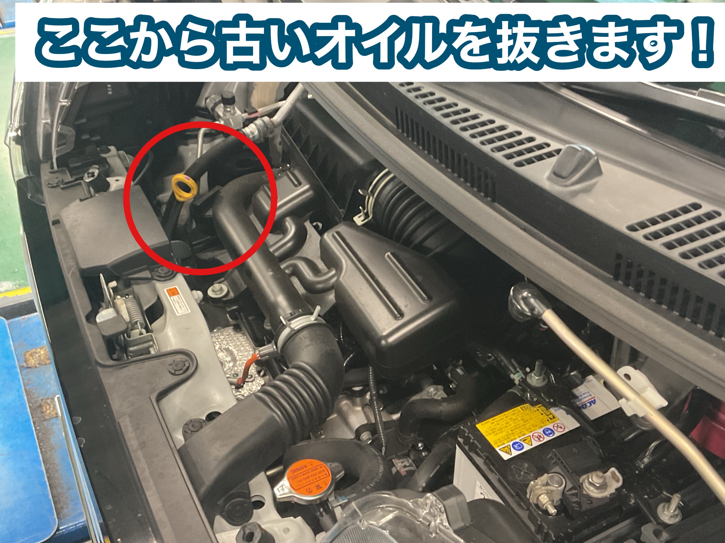 今回はお車のエンジンルームから古いオイルを抜きます!
