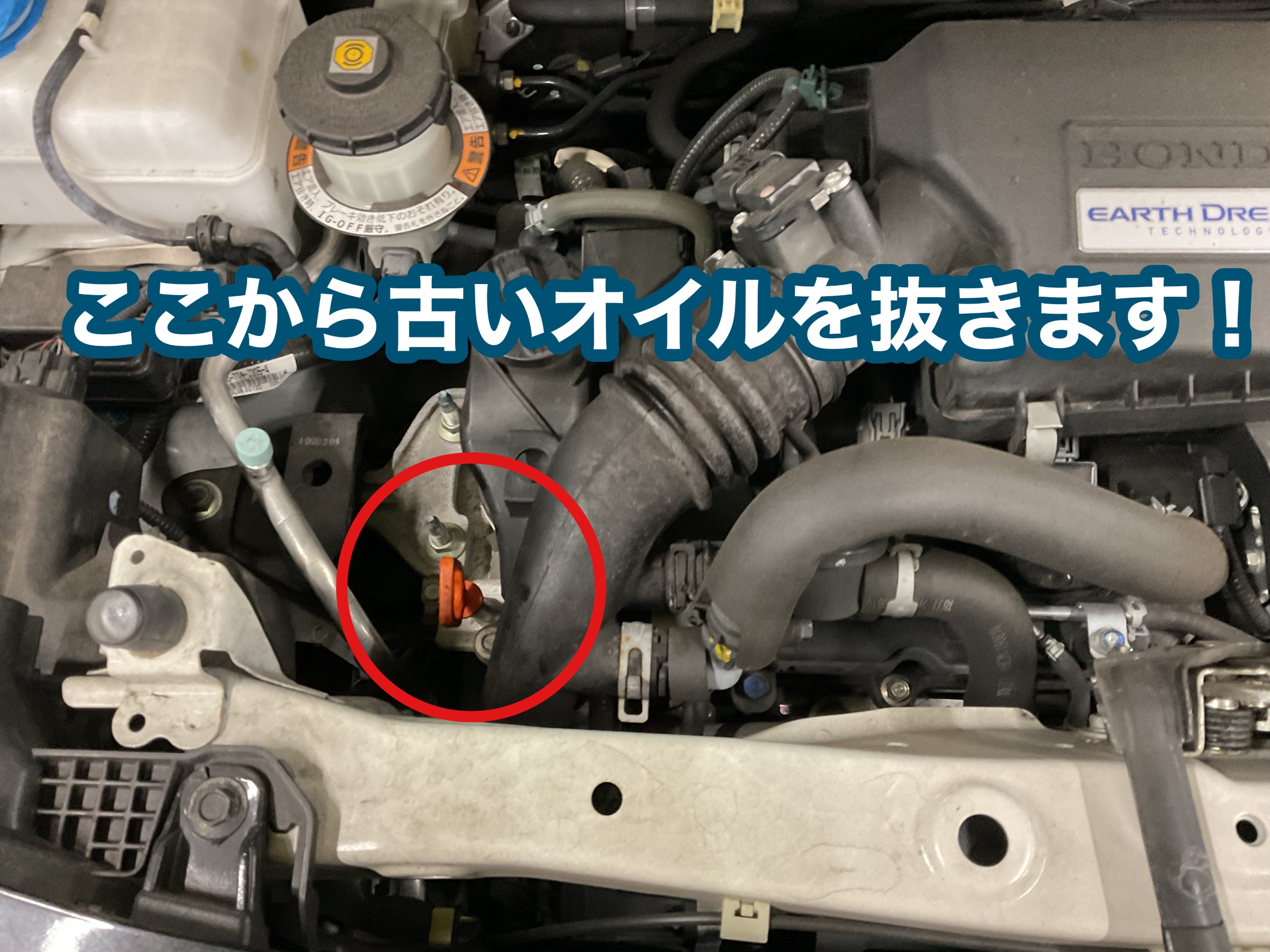 今回はお車のエンジンルームから古いオイルを抜きます!