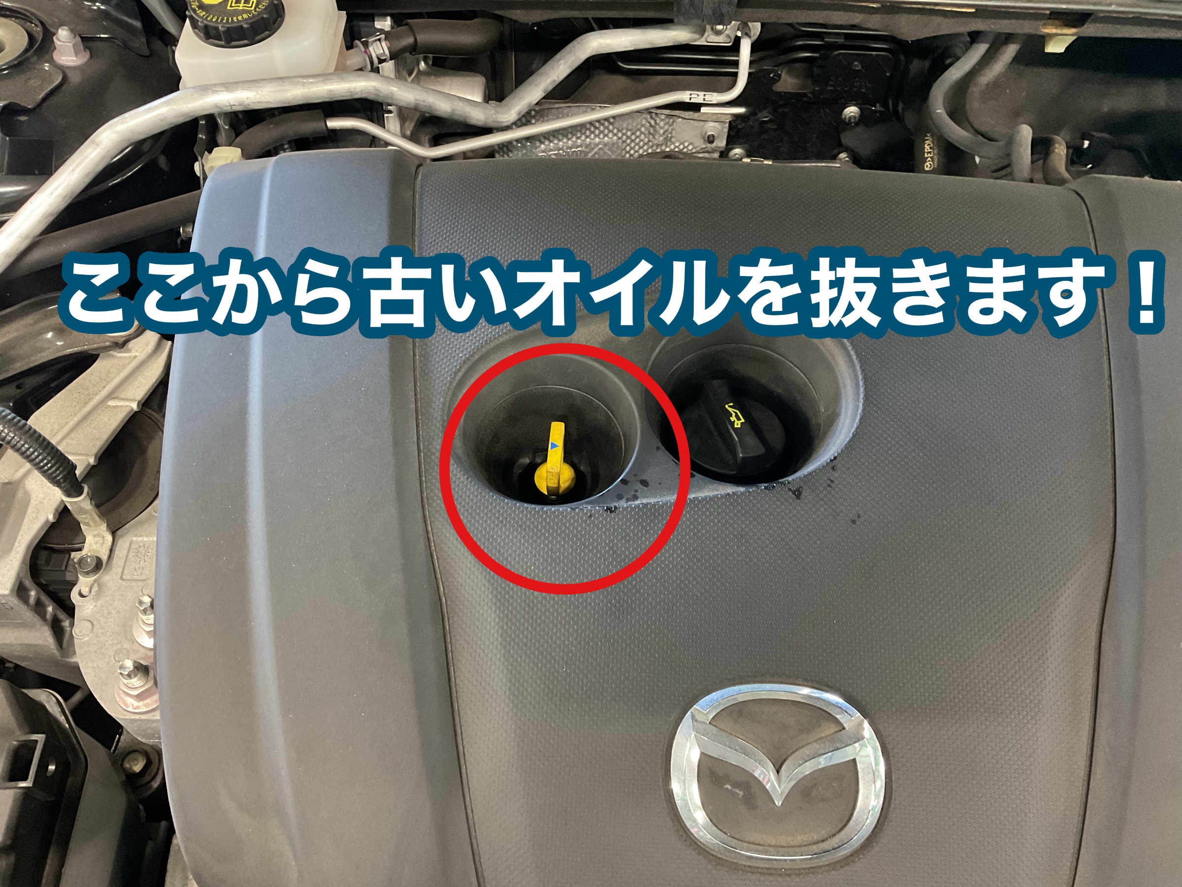 今回はお車のエンジンルームから古いオイルを抜きます!