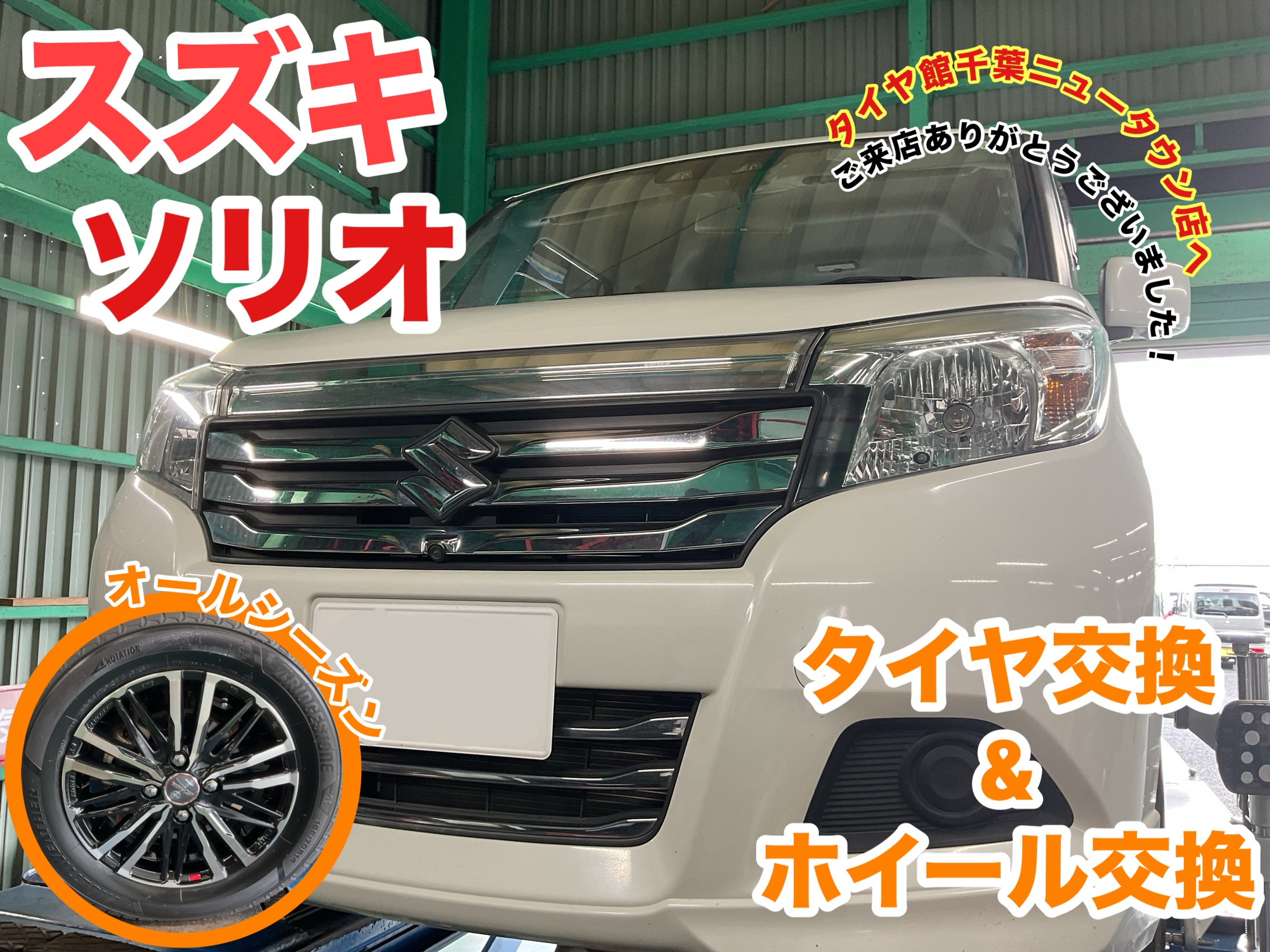 本日は、【スズキ/ソリオ】のタイヤ交換、ホイール交換をご紹介します!