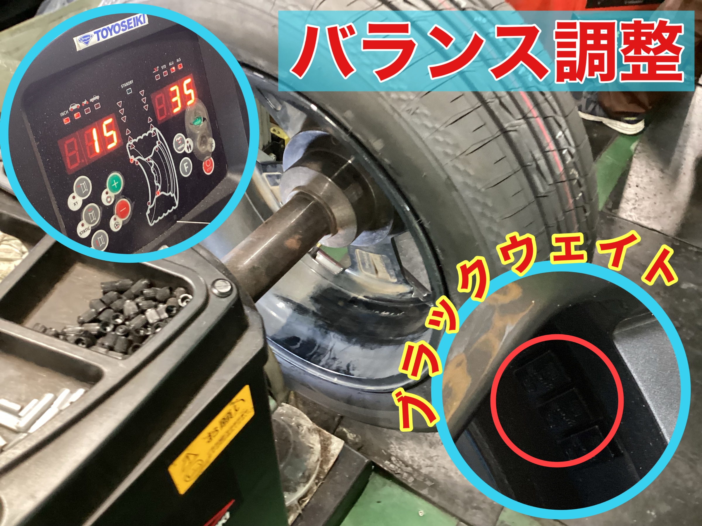 通常とは違う黒色のバランスウェイトを装着しました!