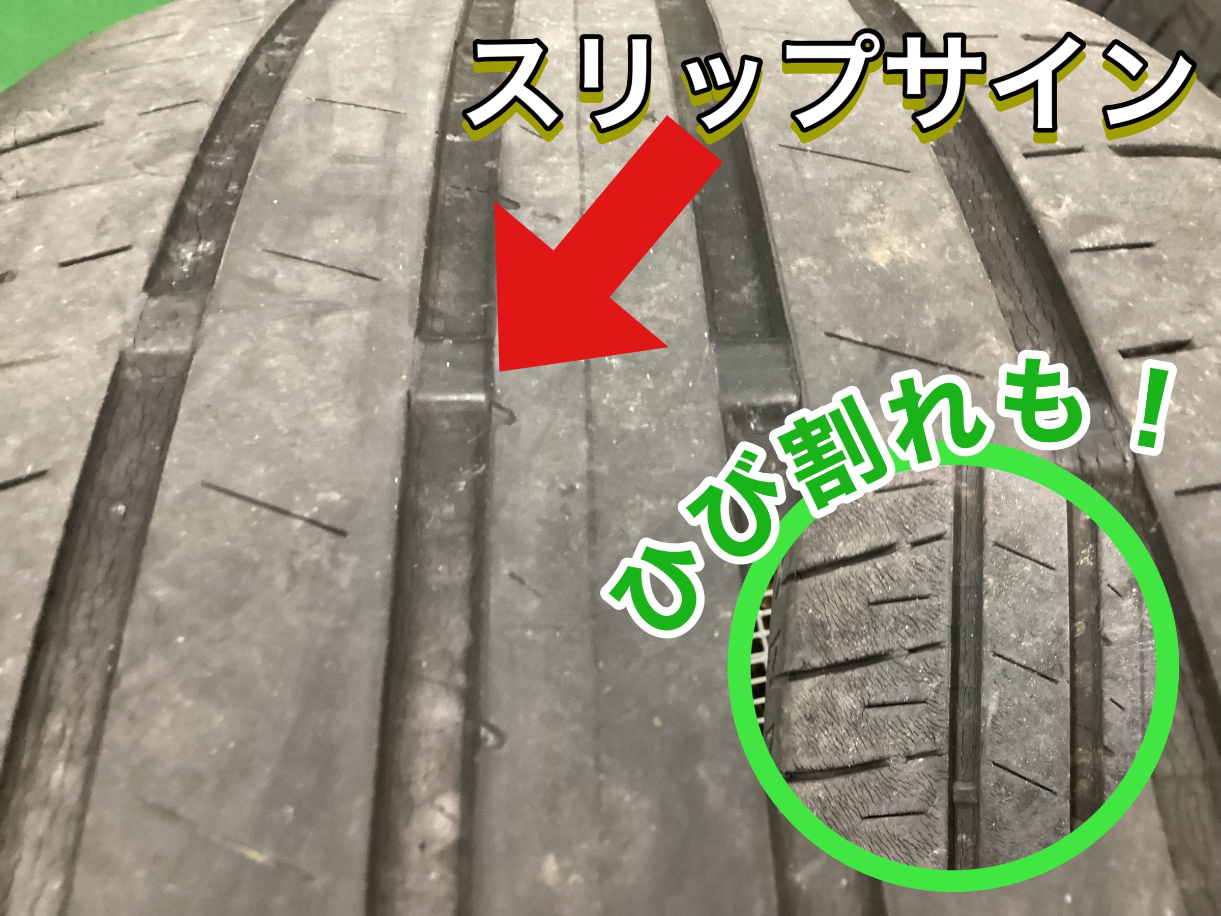 点検を行いましたら、溝がスリップサインギリギリまで減っていました!