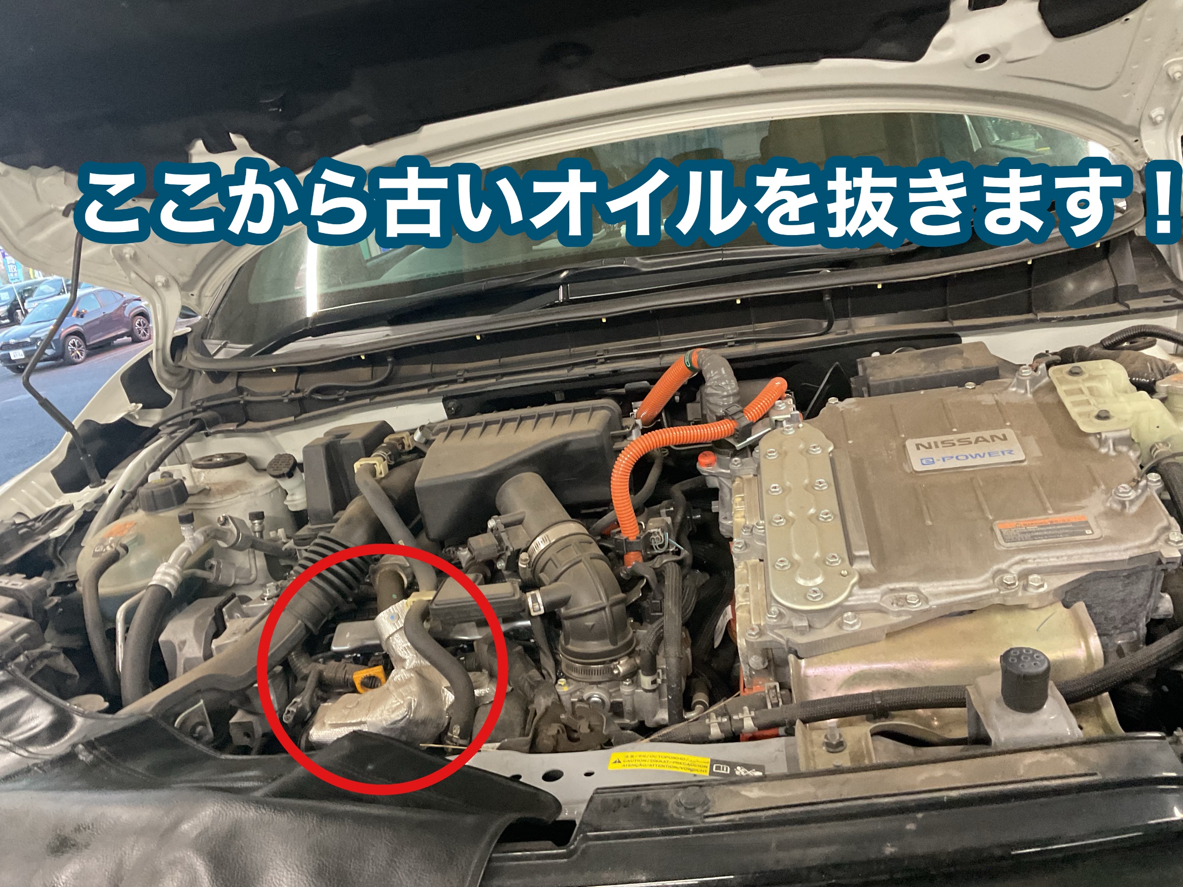 今回はお車のエンジンルームから古いオイルを抜きます!