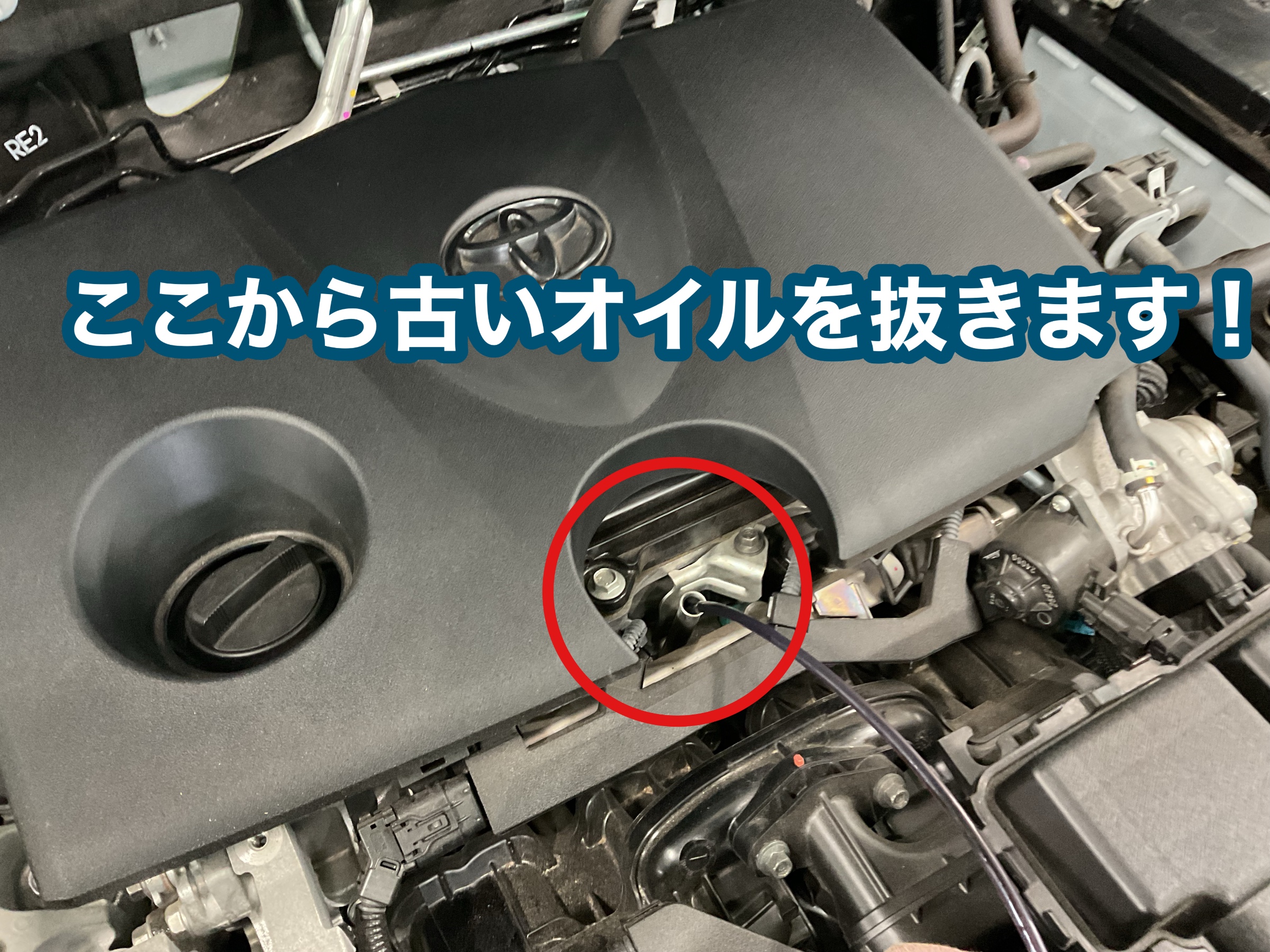 今回はお車のエンジンルームから古いオイルを抜きます!