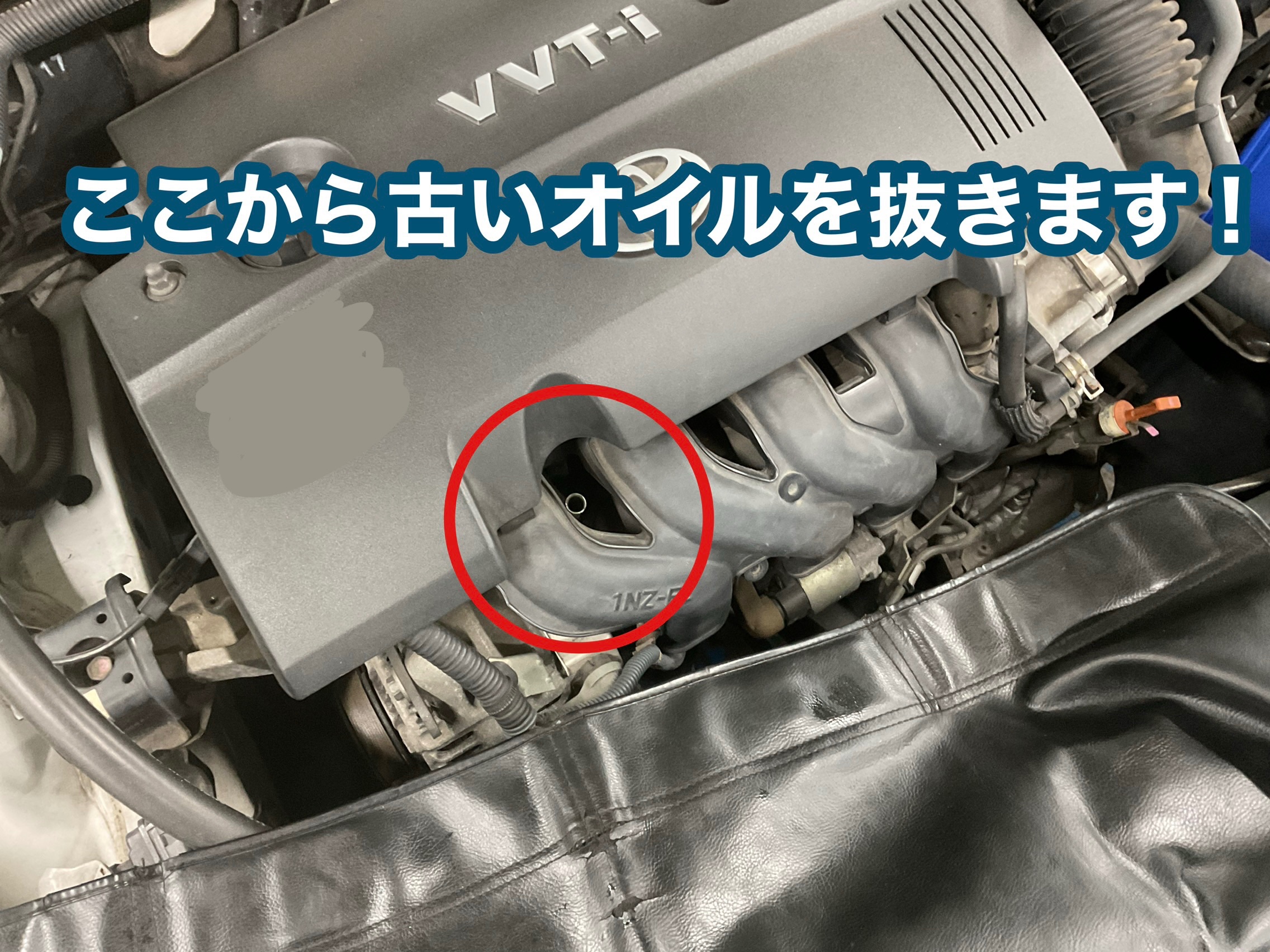 今回はお車のエンジンルームから古いオイルを抜きます!
