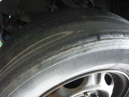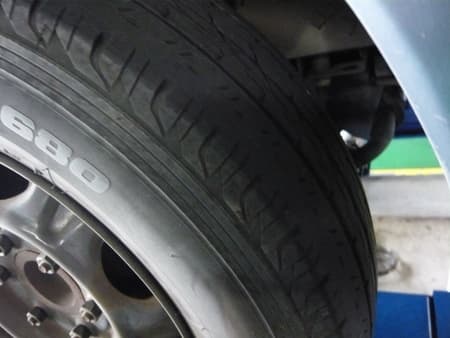 写真2 こちらが磨耗が激しい左側の前タイヤです。
