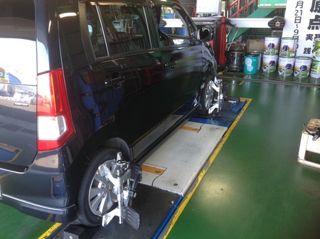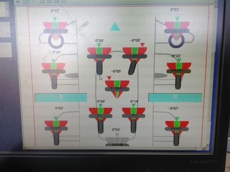本日の作業でタイヤの片減り(偏磨耗)からアライメント作業を実施させていただきました。