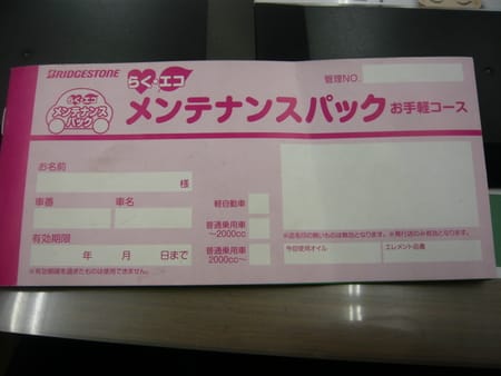 メンテナンスパックというのですが、内容は
