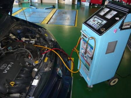 エアコン内の水分や汚れを除去しつつ綺麗なガスを規定量で充填するといった作業になります!!