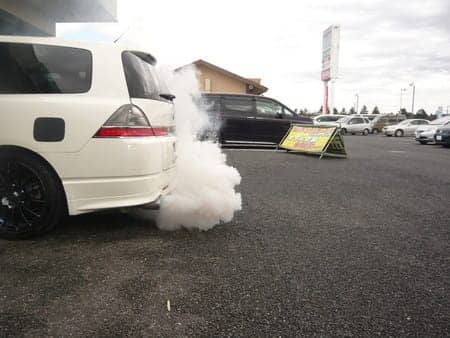 施工終了時、アクセル・オンでエンジンの回転を上げることで、マフラーから