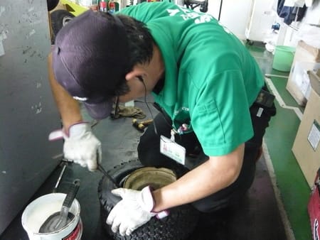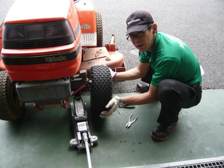 今日は、芝刈り機!?のタイヤ交換のご紹介。