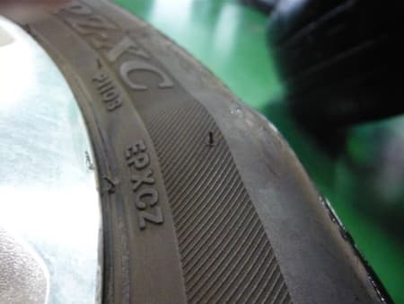 写真1 よく見るとタイヤの脇が膨らんでいるのがお解かり頂けると思います。