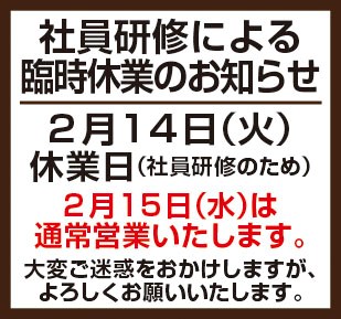 2月14日(火)は臨時休業させていただきますっ