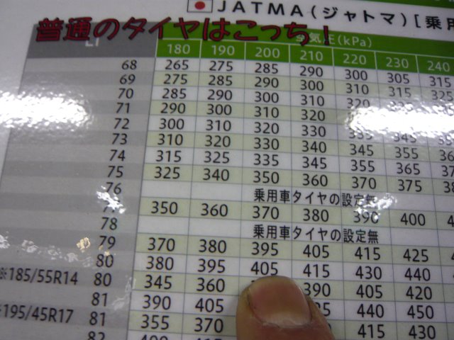 195/45R16 80Wと記載されています。空気圧は200Kpa。