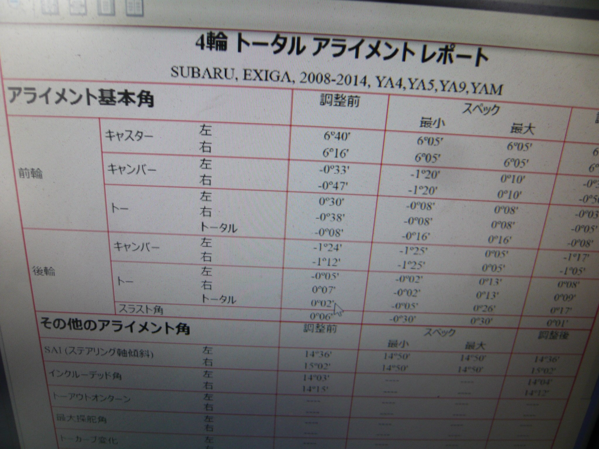 今回は、スバル・エクシーガのアライメント調整の御案内になります。