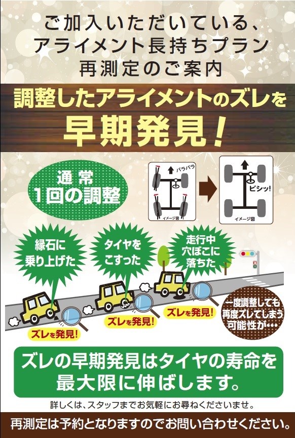 せっかく買って頂いたタイヤを長く・上手にご使用いただく為のプランンになります。