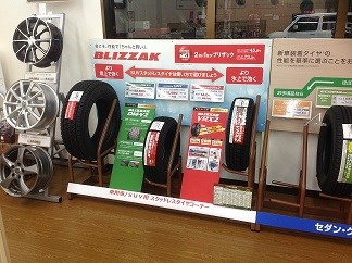 店内の冬タイヤの特設コーナーです。