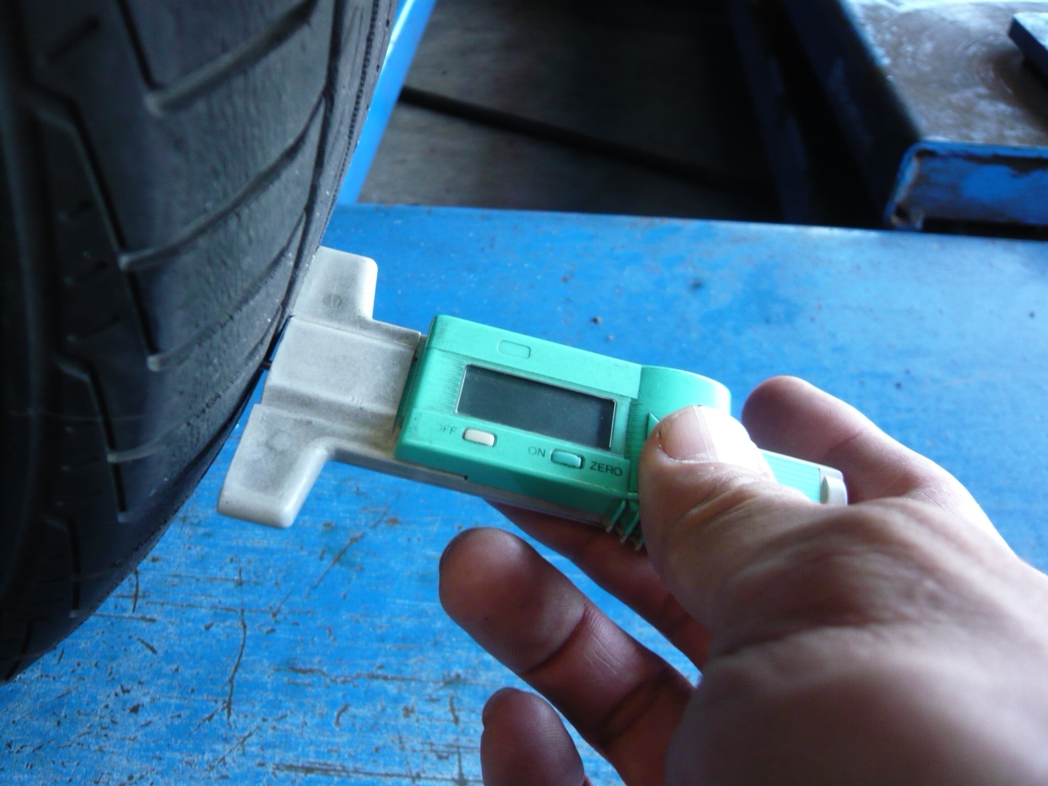 タイヤの残り溝は、目視ではなくきちんと専用ゲージでの測定を行っています。