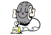 窒素ガスは通常の空気と比べて、タイヤ内圧の自然低下が少ないので、タイヤ内部の圧力をより長く安定した状態に保つ働きがあります。 タイヤ館では窒素ガスの充填をお勧めしています。