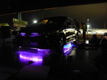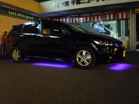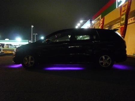青や白に光らせてる車をよく見かけますが、取り付けたのは紫に近いピンク!