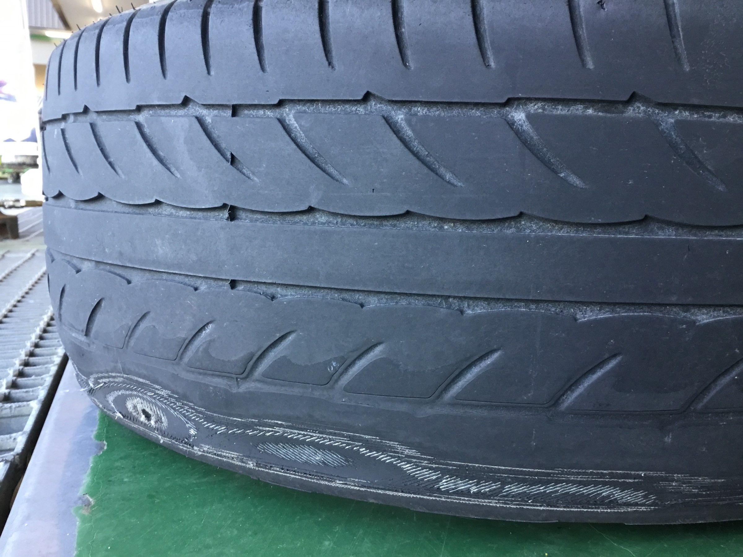 こちらの画像はタイヤが減りすぎて穴が開いてパンクしてしまった画像になります。