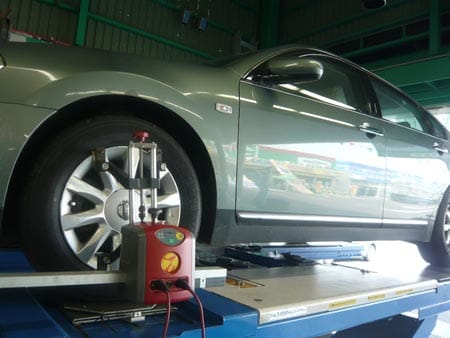 ということで、アライメント担当まつがやが本日も汗を流しながら車の下にもぐって奮闘中!!