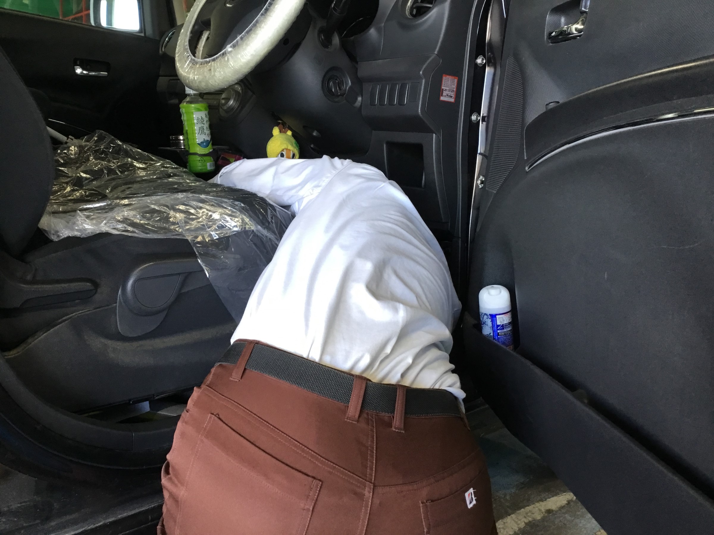 タイヤ取り付けと送受信確認を行い、お客様と立ち合いで装着確認